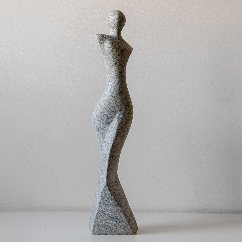 Sculpted with precision and elegance, Poser celebrates the timeless beauty of the feminine form through clean curves and striking minimalism. Handcrafted from granite, this modern abstract figure stands tall with confident poise, evoking strength, grace, and individuality. Its sleek silhouette and balanced stance make Poser a statement piece perfect for contemporary interiors, galleries or curated art corners. The raw texture of granite adds organic depth, while its sculptural simplicity brings a refined artistic edge.