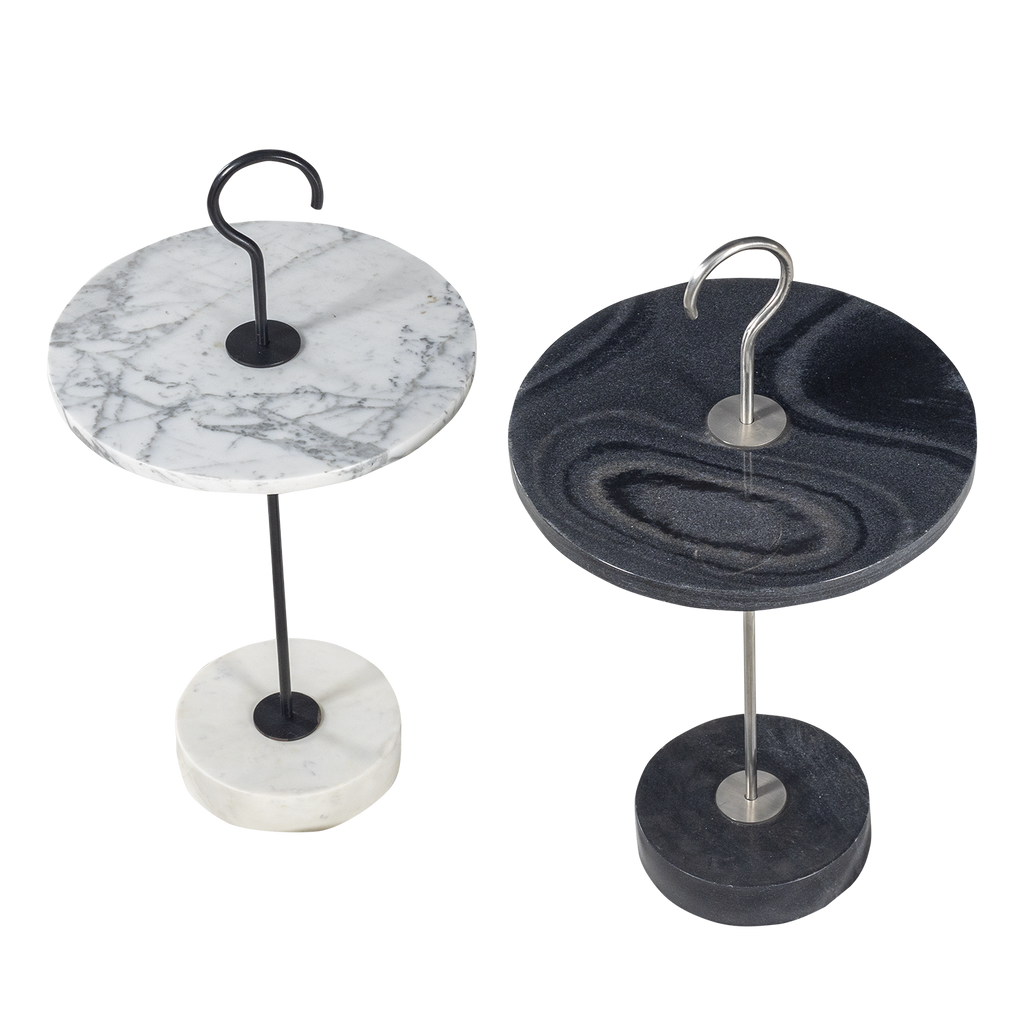 Infuse your space with creativity and sophistication with the Marble Question Mark Side Table. Designed to be both functional and artistic, this eye-catching piece , handcrafted from luxurious marble with rich veining and a smooth, polished surface. The playful yet elegant form makes this table a perfect conversation starter, whether placed beside a sofa, in a reading nook or as a statement piece in an entryway. The contrast of white marble with a sleek black metal base enhances its modern appeal, effortlessly complementing contemporary and eclectic interiors.