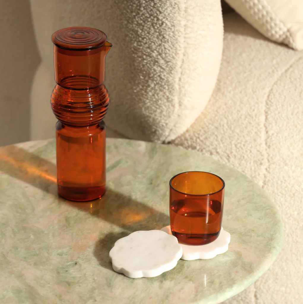 Made from non-toxic glass, it keeps beverages pure and fresh, while its sculptural silhouette brings effortless charm to everything from morning juice to evening cocktails.
