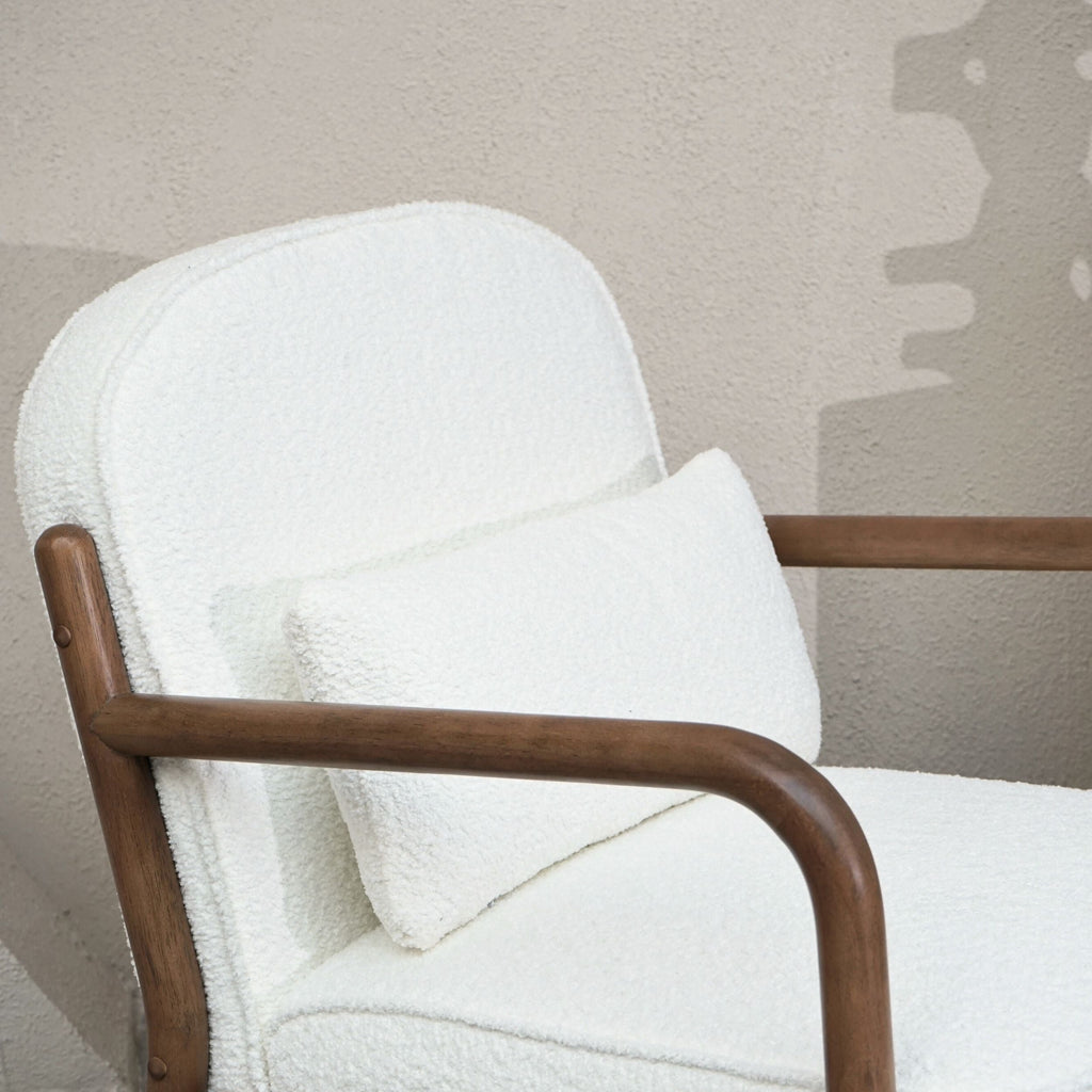 • Curved wooden silhouette and luxurious premium-quality boucle upholstery for a sophisticated touch.