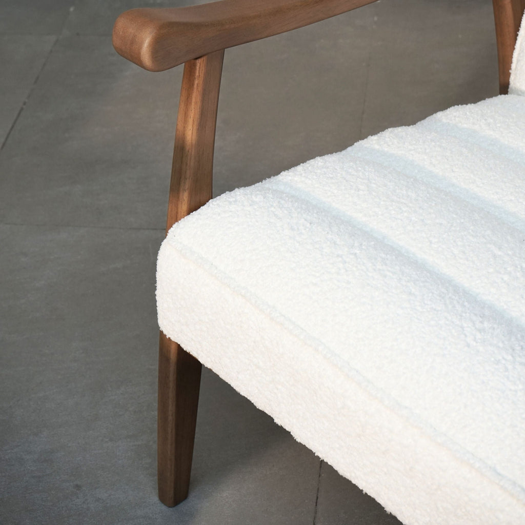 - Sleek wooden silhouette and luxurious premium-quality boucle upholstery for a sophisticated touch.