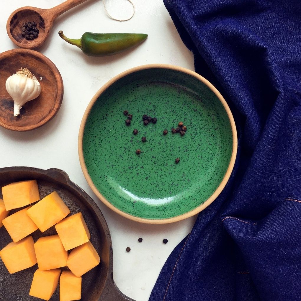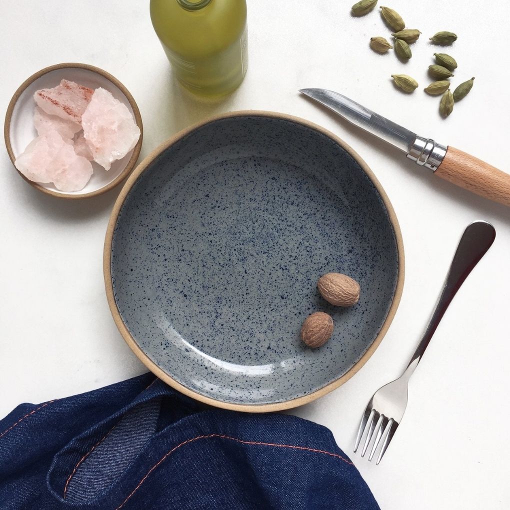 These round-rimmed functional bowls showcase food beautifully and come in 6 vivid hues. Perfect for plating single servings. We collaborated with Button Curry to bring this collection of unique handmade and hand-painted serveware for you. There may be minor variations in measurement and colour specification from one piece to another as this product is handmade and hand-painted.