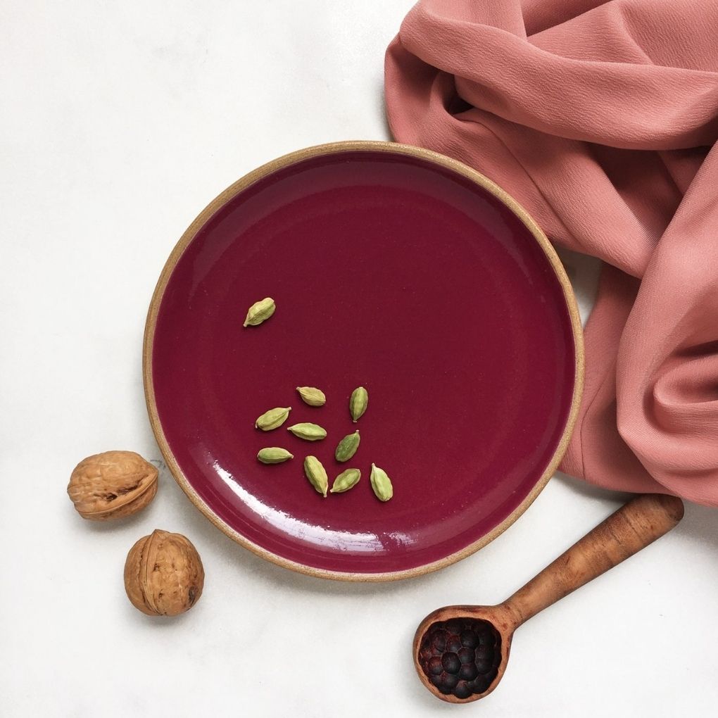 Coupe quarter plates are perfect for sides, smaller meals or for any kind of appetizer or dessert course. We collaborated with Button Curry to bring this collection of unique handmade and hand-painted tableware for you. There may be minor variations in measurement and colour specification from one piece to another as this product is handmade and hand-painted.