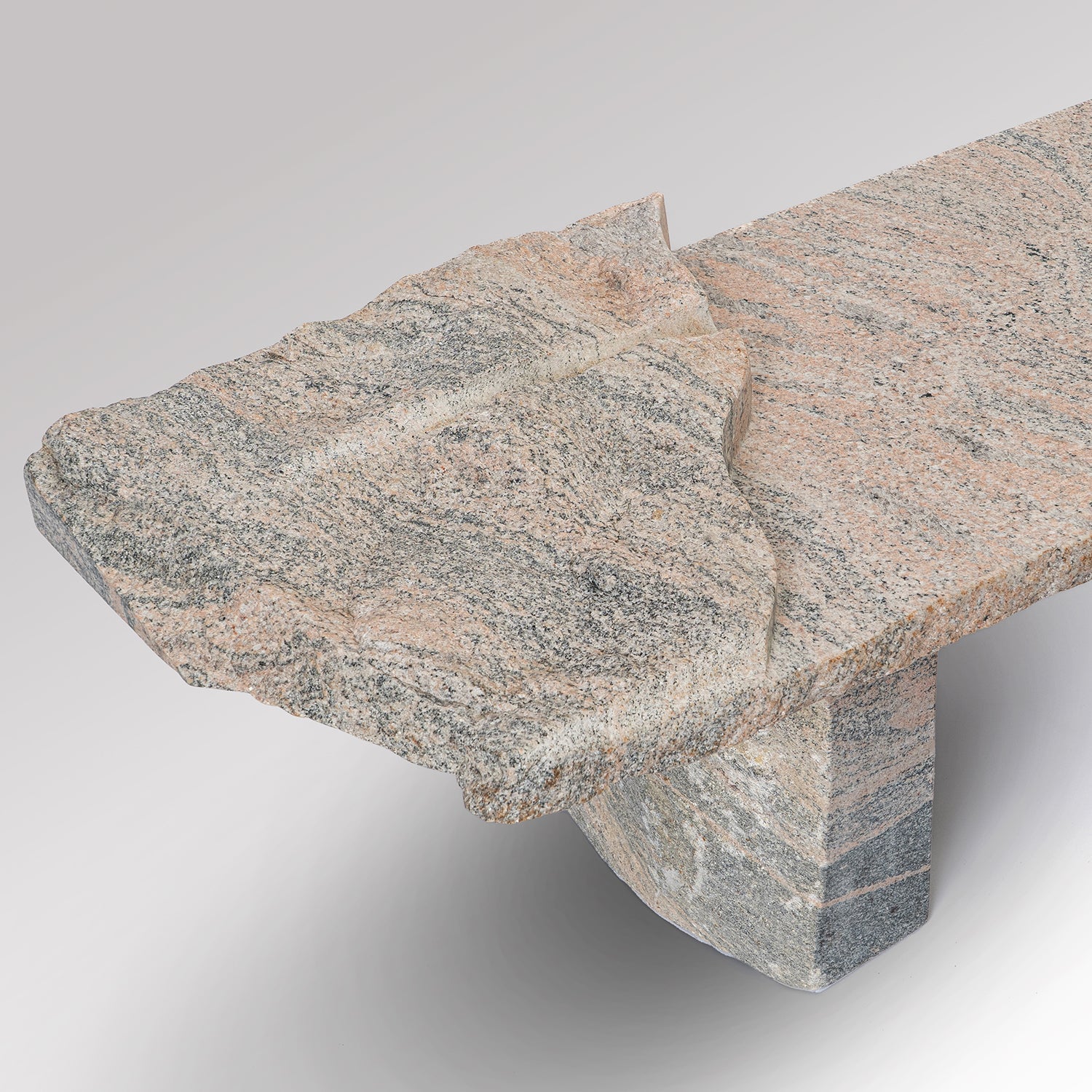 The Drift Sculptural Bench | Hand-Carved Pink Granite