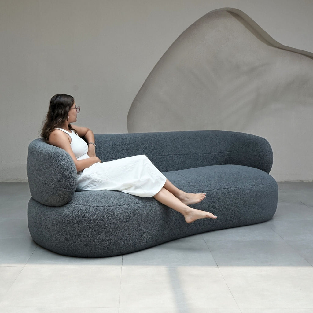 Faye Three Seater Bouclé Sofa - Slate Grey