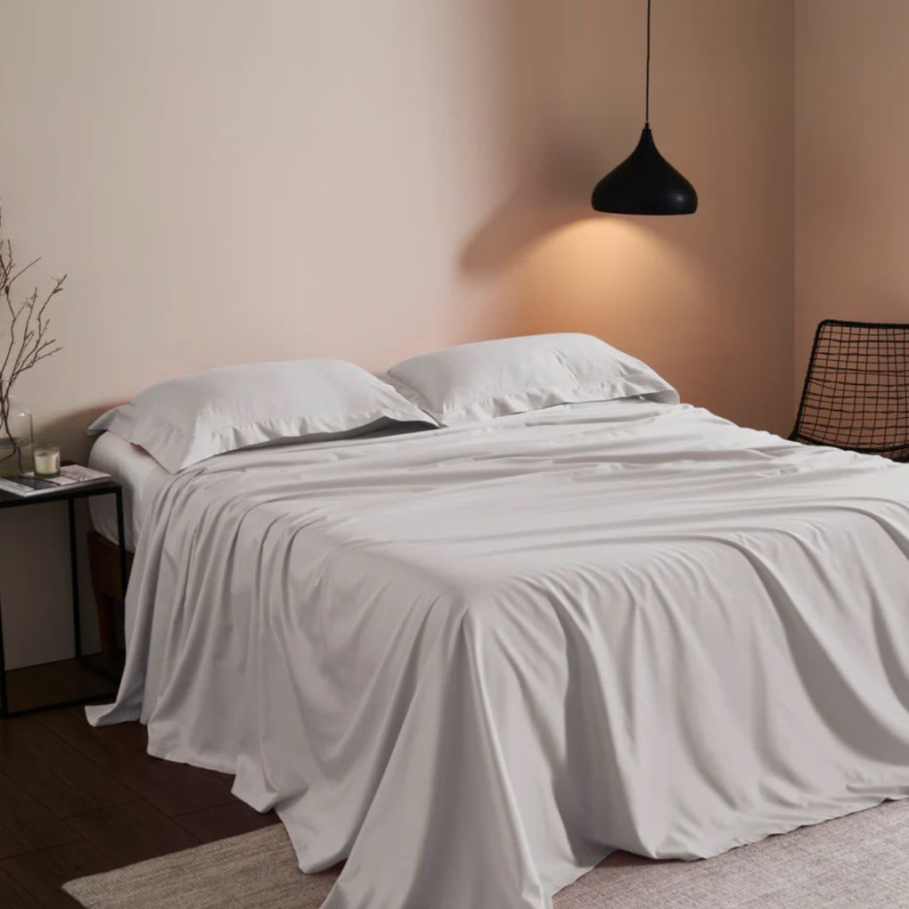 Finished with a delicate artisanal fagoting stitch, this set elevates the "unmade bed" look into a style statement. And because we know life isn't black and white (and neither is your bedroom), we’ve curated a palette of solid hues—from calming neutrals to deep, mood-setting tones—so you can layer your bed to match your season. Pair our white bedsheet with our White Metal Wool & Silk Rug.