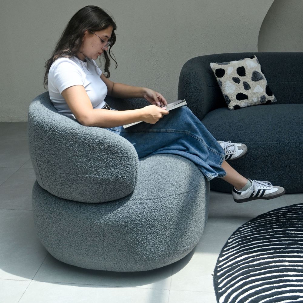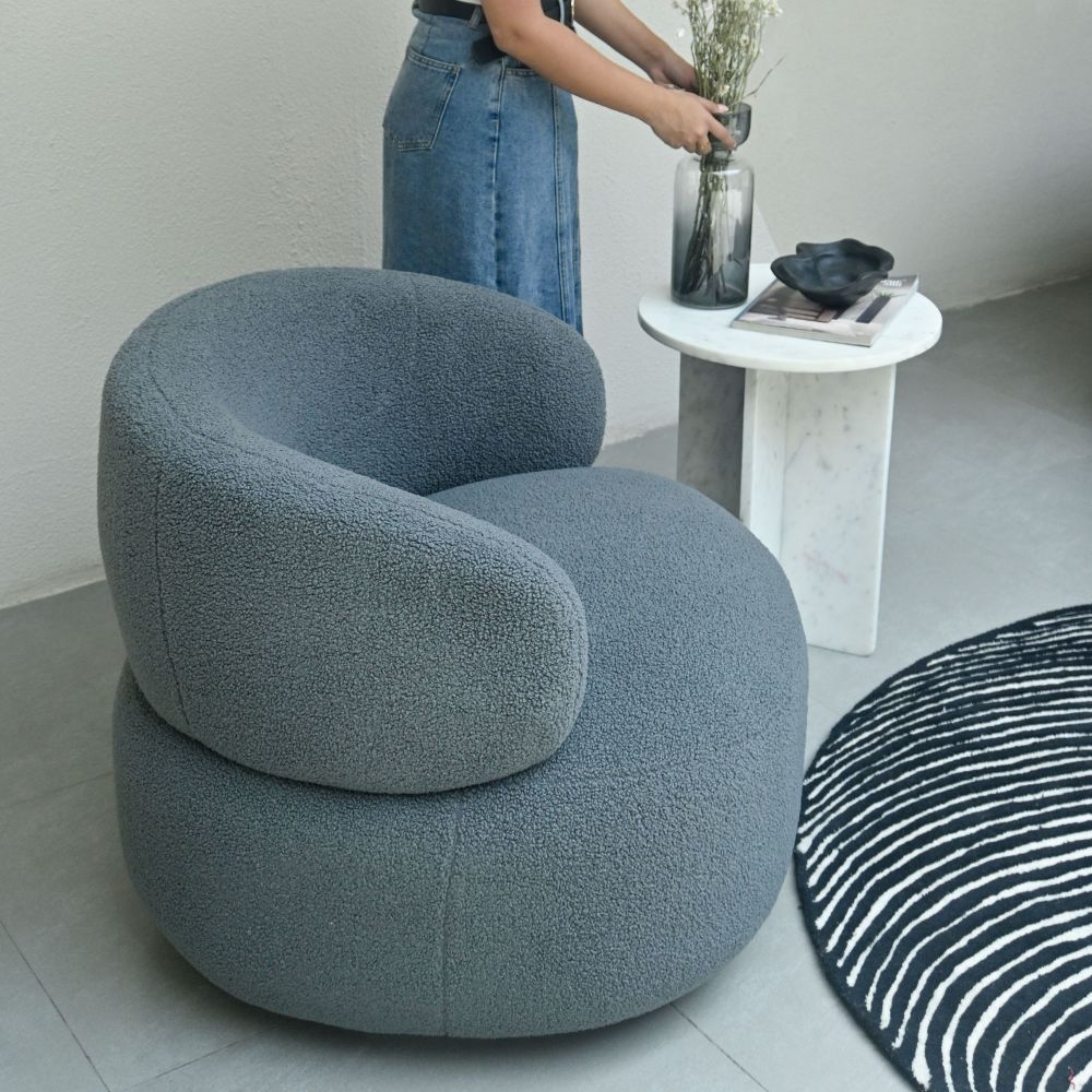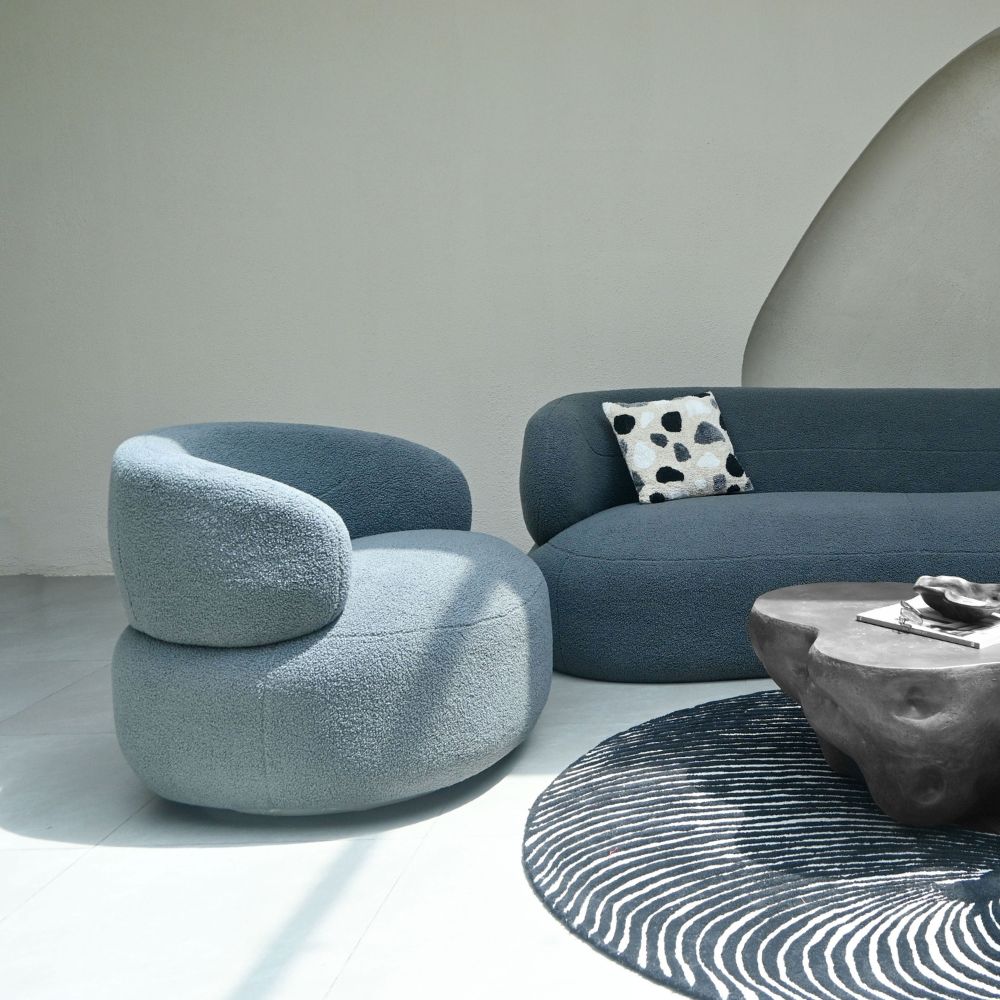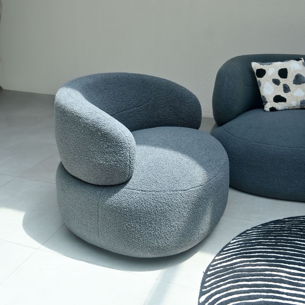 - Curved and Soft silhouette and luxurious premium-quality boucle upholstery for a sophisticated touch.