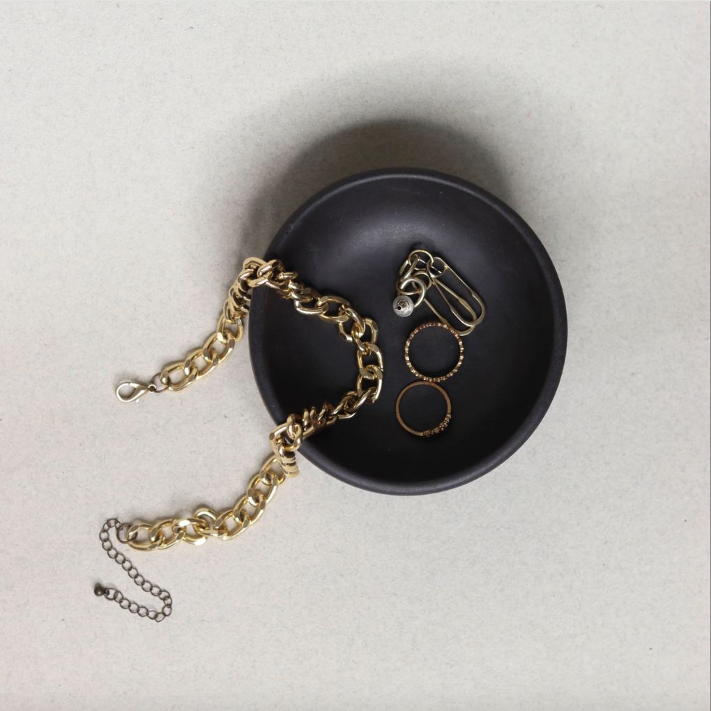 Measuring at 11 centimetre, it's the perfect size to hold your jewellery, keys, or other small items on your nightstand, vanity, or desk. It is also food-safe and works great as a dip bowl on your table setting.