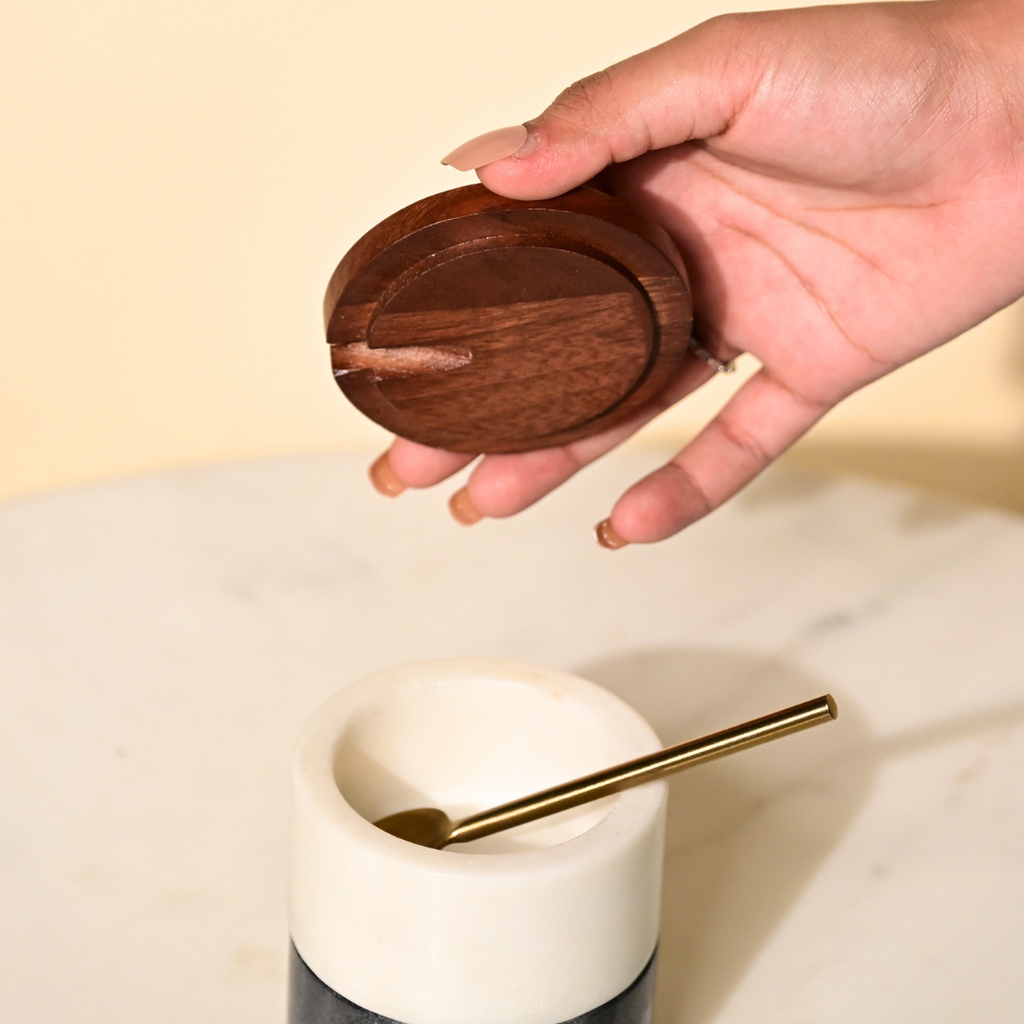 • Natural Aesthetic: It adds a warm, organic touch that beautifully complements the cool marble jars.