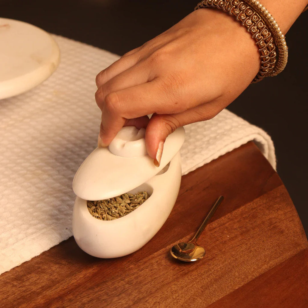 • Crafted from pure marble, each piece captures natural veining and artisanal quality.